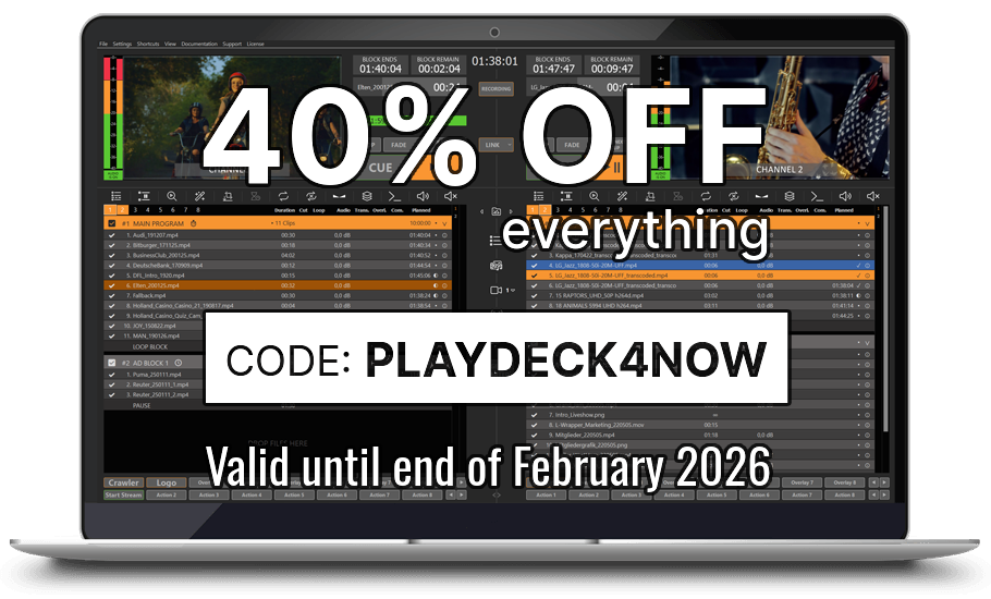 But PLAYDECK (depending on your licence) is much, much more than a simple playout system: