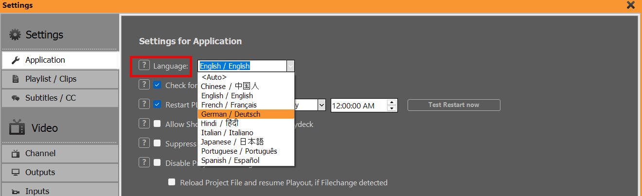 Save the SIB File (or press CTRL+S). In PLAYDECK switch to GERMAN in the App Settings: