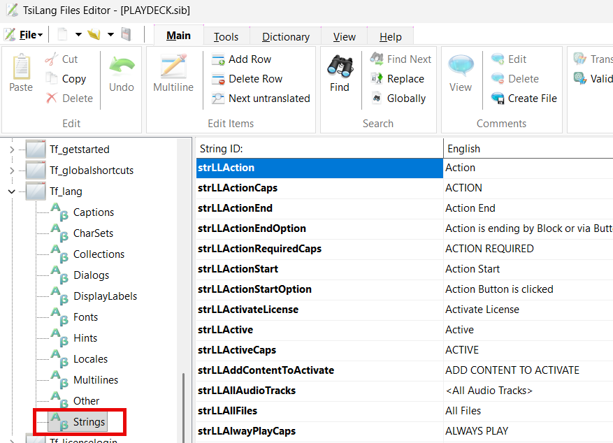 In the huge middle table, where you edit your texts, there is also a column called “String ID”, which represents the internal name of the corresponding element in PLAYDECK. This “can” be of help in some cases you might be searching for something.